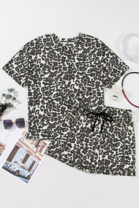 Black Cheetah Printed Casual Tee and Shorts Lounge Set