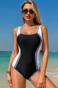 Black Color Block Ric Rac Trim U Neck One Piece Swimsuit