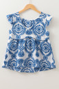 Blue Boho Print Flutter Sleeve Crew Neck Blouse