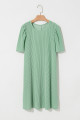 Bright Pink Corded Knit Crew Neck Puff Sleeve Shift Mini Dress