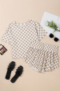 Brown Checkerboard T Shirt and High Waist Skorts 2 Piece Outfit