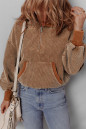 Chestnut Half Zipper Kangaroo Pocket Drawstring Corduroy Hoodie