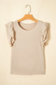 Clearly Aqua Solid Color Ruffled Short Sleeve Casual Blouse