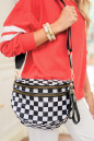 Color black Checkered Print Wide Strap Large Crossbody Bag