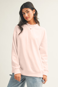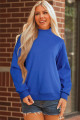 Dark Blue Solid Color Oversized Mock Neck Sweatshirt