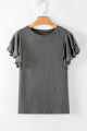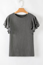Dark Grey Layered Ruffle Short Sleeve Round Neck Top