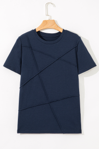 Dirty blue Solid Color Toothpick Stripe Round Neck T Shirt