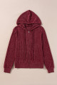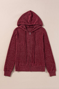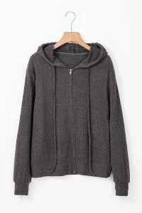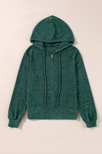 Evergreen Ribbed Zip Up Front Drawstring Hoodie