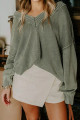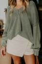 Four Leaf Clover Mineral Wash V Neck Knit Exposed Seam Drop Shoulder Loose Sweater