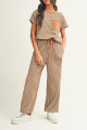 Khaki Stripe Crew Neck Tee Drawstring Waist Cropped Pants Set