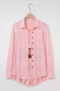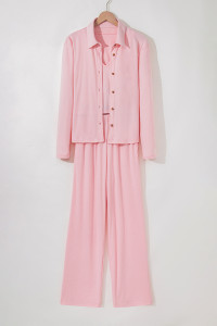 Light Pink 3 Pcs Crop Tank Top Shorts with Cardigan Lounge Set