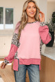 Light Pink Color Block Leopard Patchwork Dolman Sleeve High Low Baggy Sweatshirt
