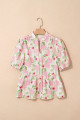 Pink Floral Contrast Edge Layered Short Sleeve Mini Dress