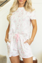 Pink Floral Lettuce Trim Tee and Shorts Ribbed Lounge Set