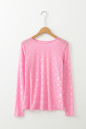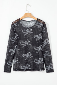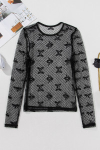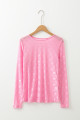 Pink Mesh Bow Pattern Long Sleeve Top