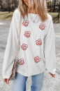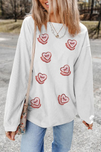 White Sequin Love Heart Pattern Corded Valentines Sweatshirt