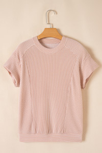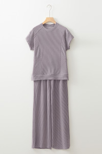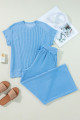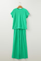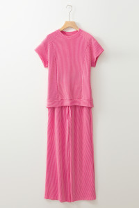 Wild Wind Solid Corded Knit Short Sleeve T Shirt and Wide Leg Pants Set